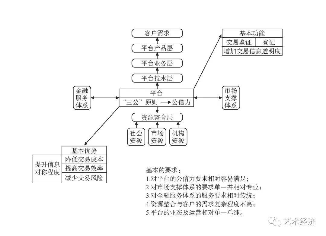 (2)行业经营模式发生了改变。在数字金融时代,与金融科技共生共长已成不二选择。金融服务的理念由“以产品和渠道为中心”向“以客户为中心”转变,突出的表现就是将金融服务融入人们的日常生活,以服务对象需求为核心的模式正在被逐步接纳。在传统业态中,基于金融体系的服务是面对面、点对点的,风控体系的核心是抵押或质押。随着科技融合的发展,金融科技的业态也在发生变化,把传统的金融体系互联网化,其核心是基于信息化基础上的基础设施建设,最突出的表现是服务等手段发生了变化,但服务的风控体系的核心仍没有改变,核心仍然是抵押和质押,并未实现风控体系核心的转型。而以数字艺术资产为核心的金融体系,其风险管理是以信用管理为核心的业态,因此,也应构建新的服务业态和经营模式。