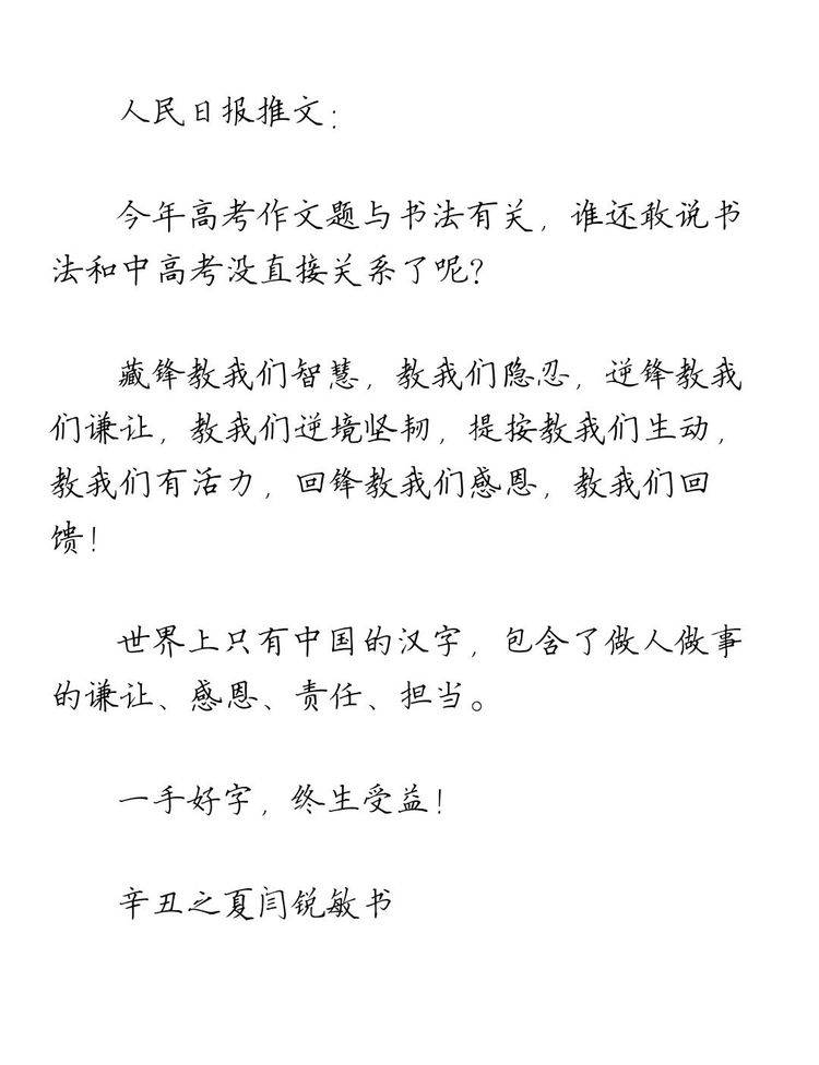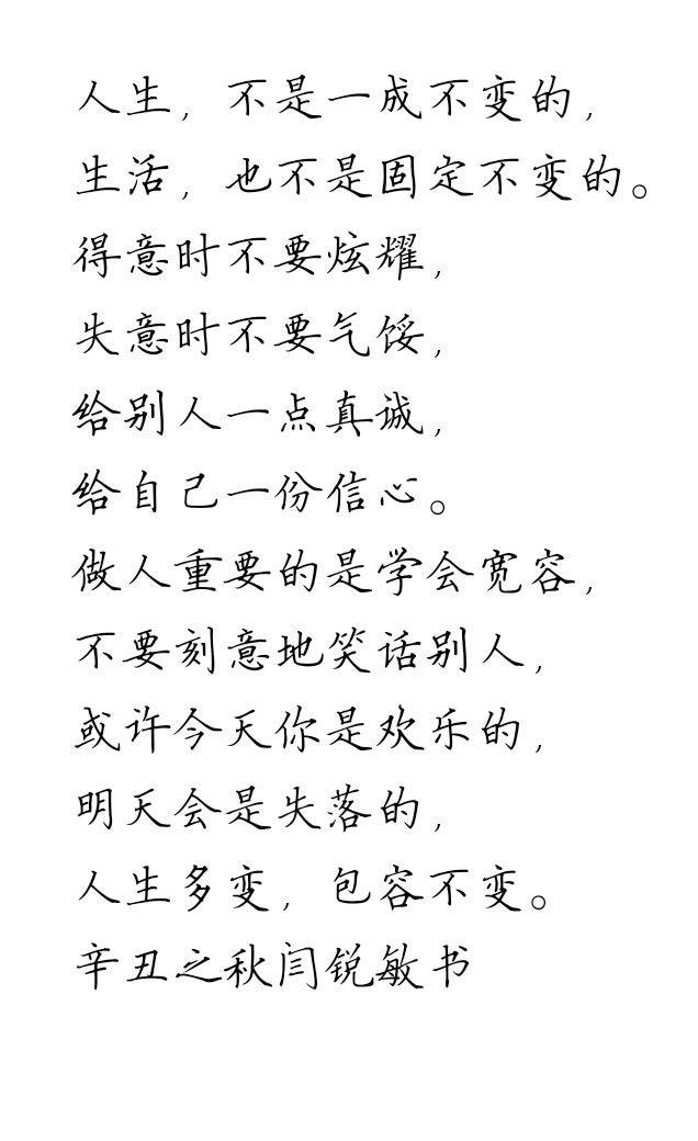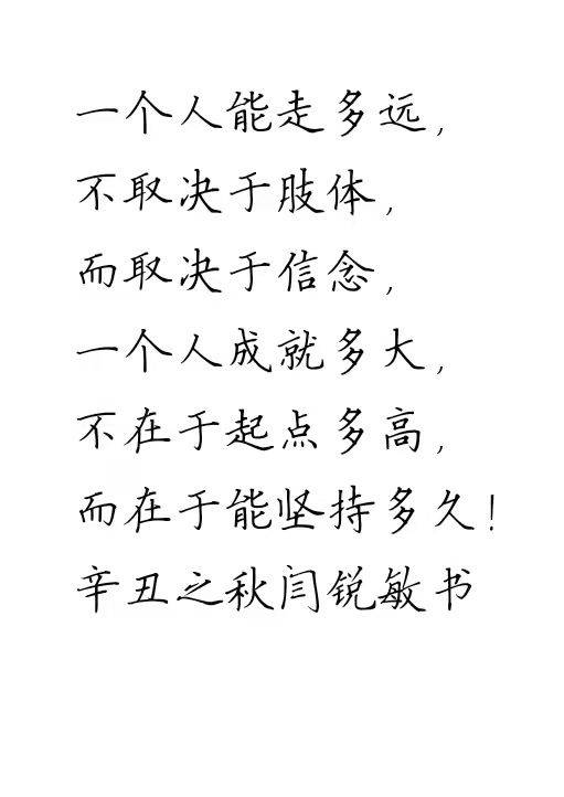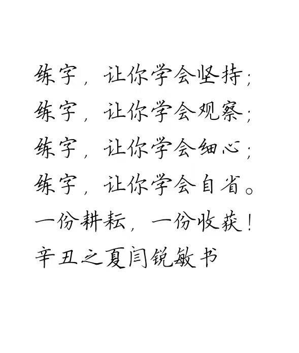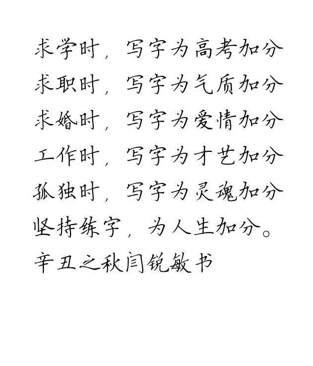 闫锐敏,男,一九五七年一月十三日生人,一九七五年始学书法,从师刘宗继先生。一九九六年毕业于首都师范大学书法专业,并被评为优秀学员,历任中国人民大学书法课程副教授、北工大计算机学院客座书法教授、北京外国语大学客座书法教授、国务院办公厅机关工会硬笔书法授课教师、国务院老干部活动中心书法导师,中国书画家联谊会教育培训中心书法专业副教授、日本国艺书道院名誉理事、新加坡新神州艺术院高级荣誉顾问,国家职业技能鉴定专家委员会书法专业委员会专家。