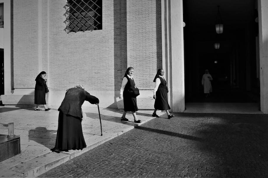 乔雨摄影作品的切入点往往是古老的街道,沧桑的建筑,有一种很强的穿透力,将人的思绪抛向悠远悠长的过去时空。如罗马的废墟,法国的古堡和印尼的神庙。而对人物的捕捉却注重瞬间的神采和真情的流露,如意大利父女深情的对视,尼斯海滨老夫妇牵手漫步等等。