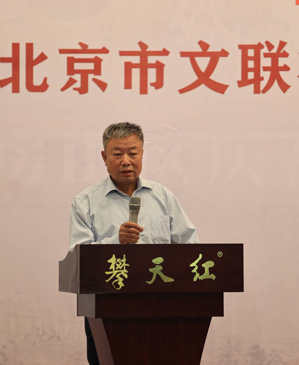 北京城市山水画研究会会长、著名画家杨留义在开幕式上致辞