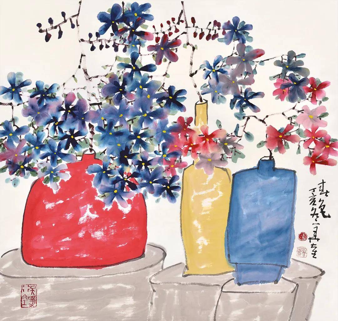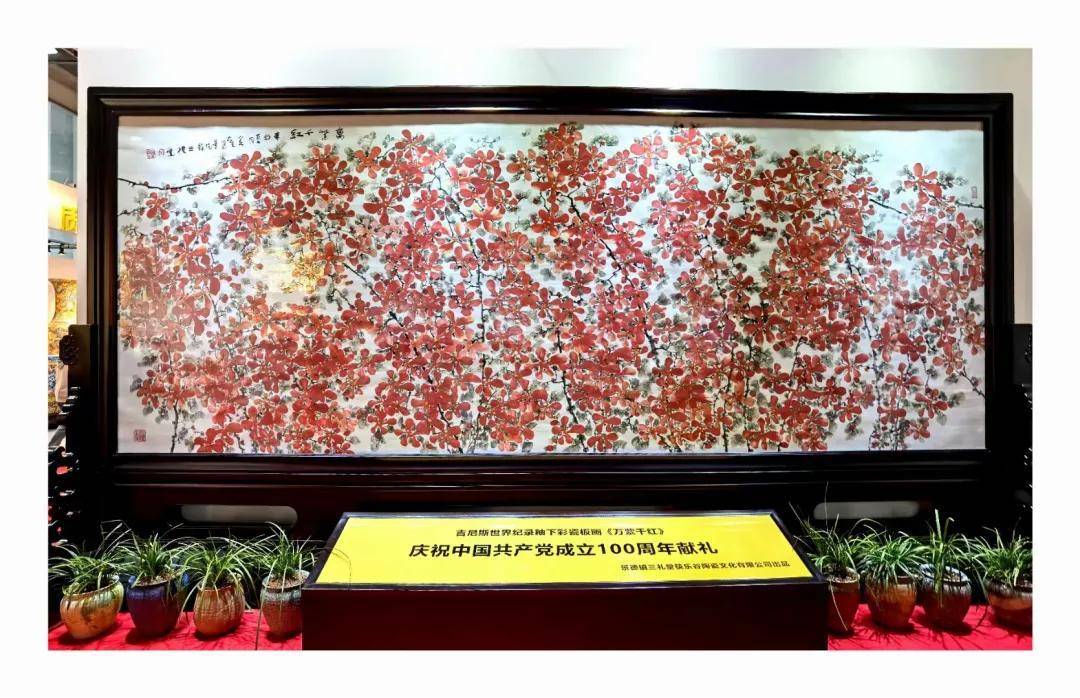 在陶瓷艺术方面,自从2009年去到景德镇,便一发不可收拾。景德镇是千年窑火不断的国际陶瓷大都会,在我书画艺术趋于成熟的时刻,再浸染于瓷艺,更加易见成效。现在陶瓷的烧制工艺、陶瓷绘画材料都更加丰富完备,其表现空间非常宽广,窑变魅力更是无穷无尽。我一到景德镇,就痴迷疯狂地投入到学习创作中。我把陶瓷作为一种新的创作载体,很快创作出了一批又一批的瓷艺精品,并建立了自己的专属工作室。被景德镇陶瓷大学聘为客座教授。一些艺术报刊也开始推介报道。接连三年,应邀参加了一年一度的国际陶瓷博览会。2009年景德镇市政府在北京国家大剧院举办的“景德镇60年成果成就展”上,选取了我的四件瓷艺精品参展。我在景德镇举办过多次瓷艺精品个人展览。北京鸟巢陈列有我70余件陶瓷精品。2016年10月,我以陶瓷大国工匠的身份应邀参加了由文化部、北京市政府主办的第三届“中国艺术品产业博览会”。我所创作的巨型高温釉下五彩瓷板画《万紫千红总是春》(3.6米×1.6米),成了该届博览会的一大亮点。