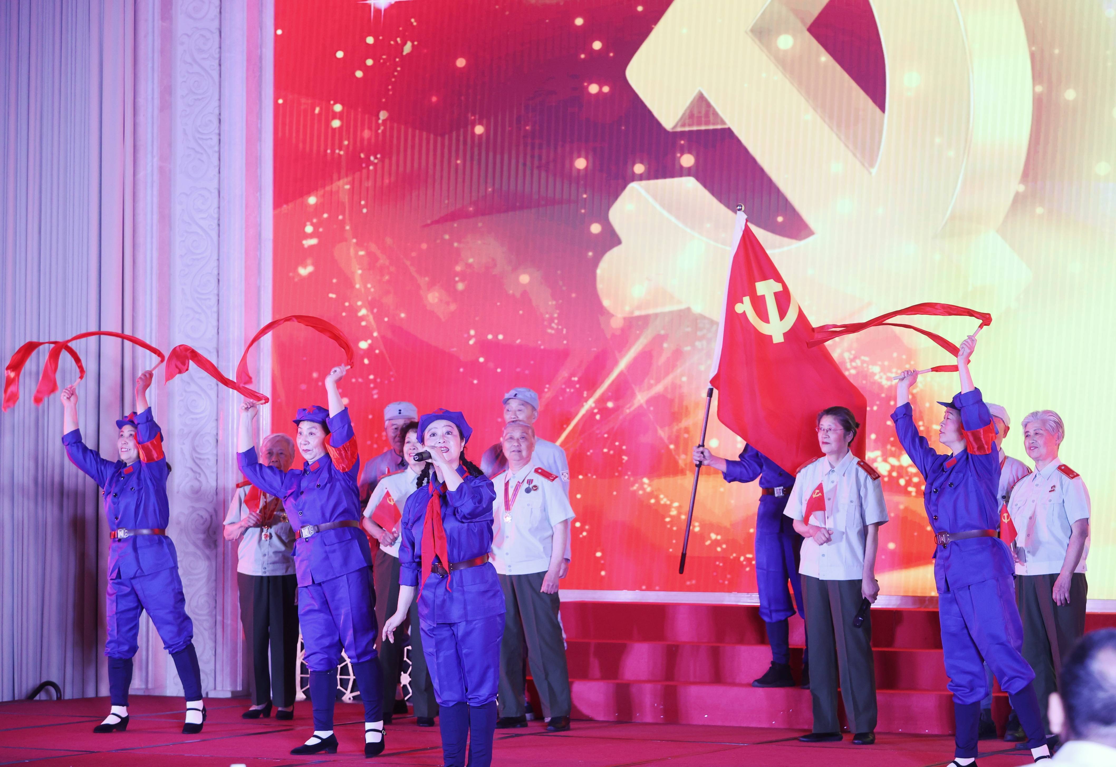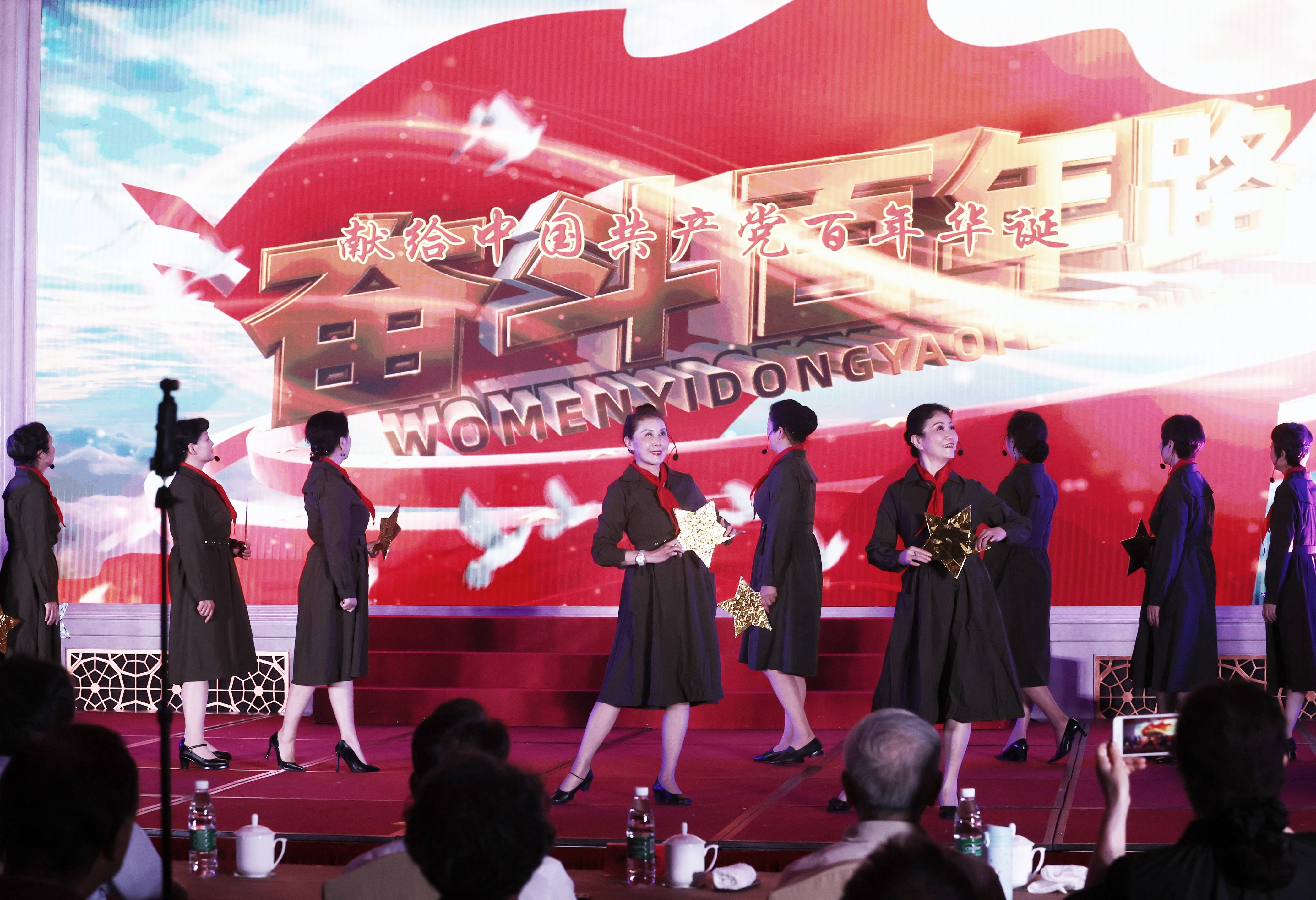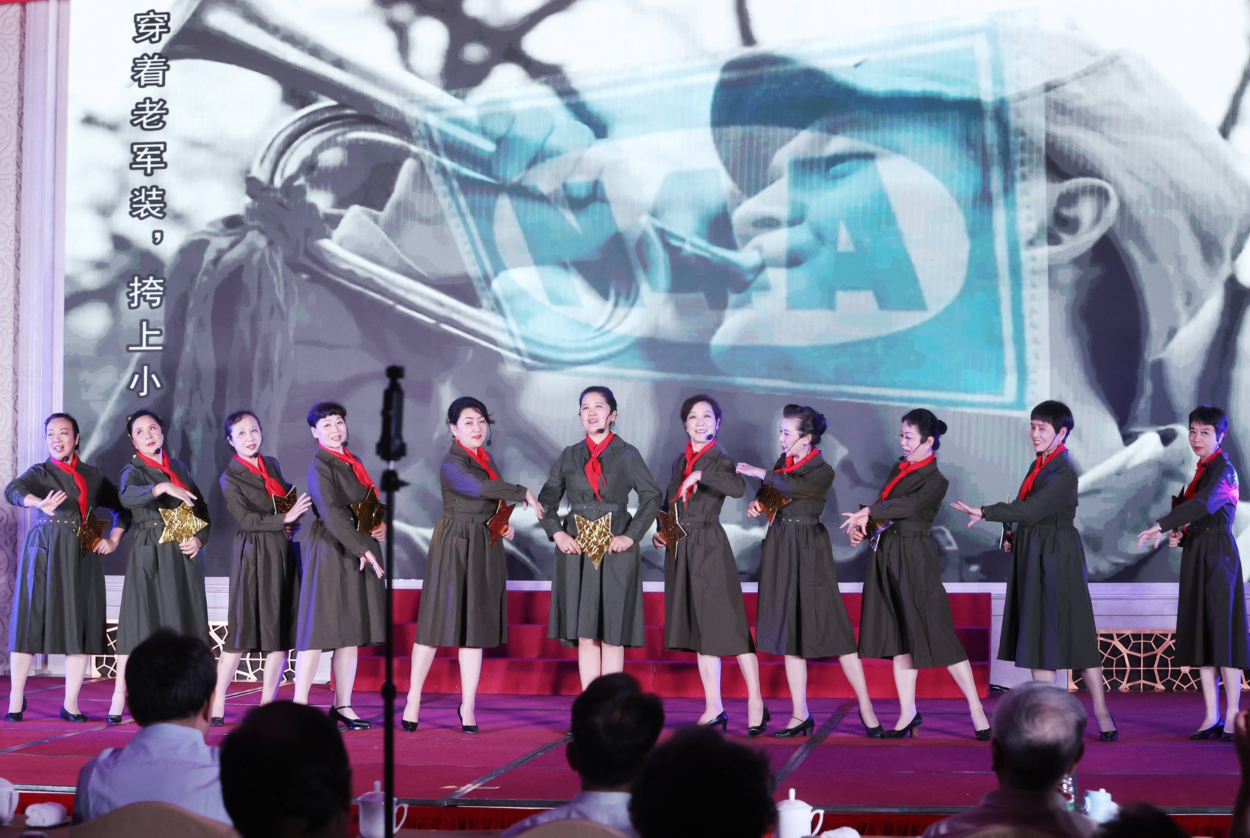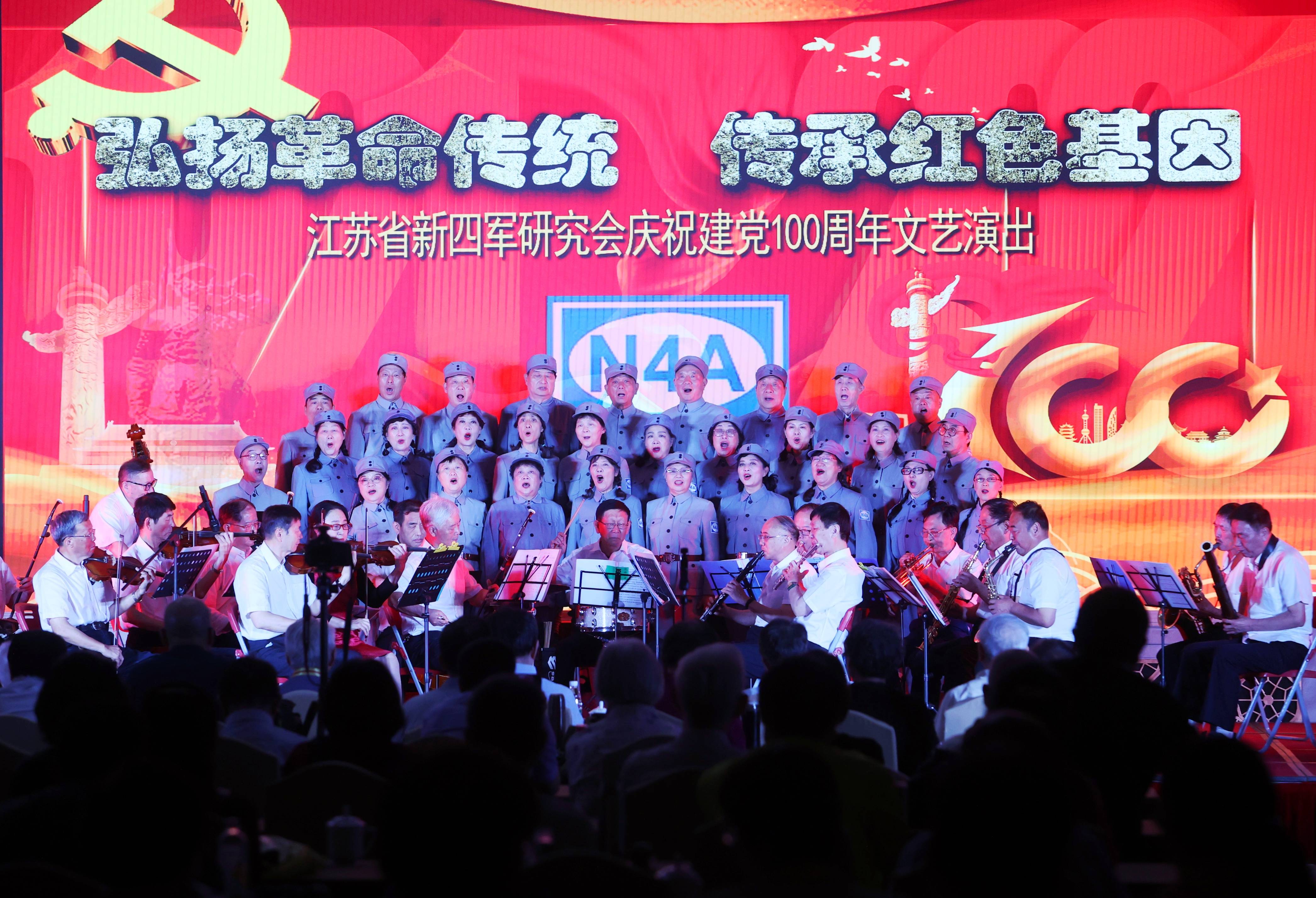 2021年6月6日下午,新四军军歌在西康宾馆9号楼会议大厅响起,拉开了“江苏省新四军研究会庆祝建党100周年文艺演出”的帷幕。来自新四军一、二、三、四、五、六、七师分会以及新四军卫生分会、南京分会、军大分会的老战士和他们的后代齐聚一堂,尽情讴歌党的百年光辉历程。演出尾声阶段,由平均年龄60岁的新四军四师后代夏洛宁、肖红、杜丽峰、王晓梅等组成的“江淮声乐组合”演唱了一首《再唱父亲的歌》,把观众的思绪又带回到战火纷飞的抗日战场。