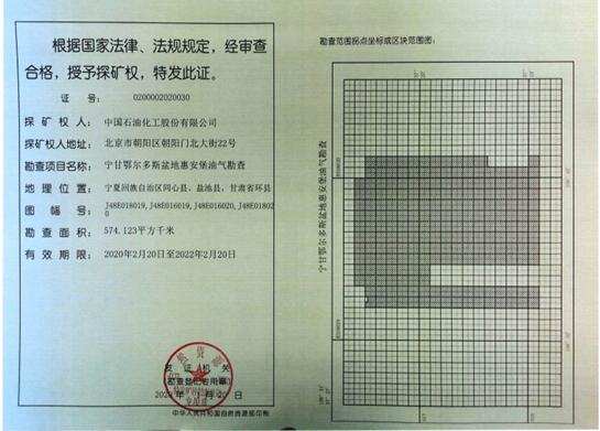 惠安油田位于宁夏回族自治区盐池县惠安堡镇,为中国石油化工集团股份有限公司胜利油田分公司(简称“胜利油田”)与北京华烨金泉石油能源技术开发有限公司(简称“华烨金泉”)合作勘探开发的油气区块,双方签订有《宁夏盐池县惠安堡—韦州区块油气勘探开发合作合同》,矿权总面积为584.383平方公里,其中探矿权面积为574.123平方公里,采矿权面积为10.26平方公里。