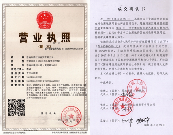 清江缘公司营业执照和土地确认书