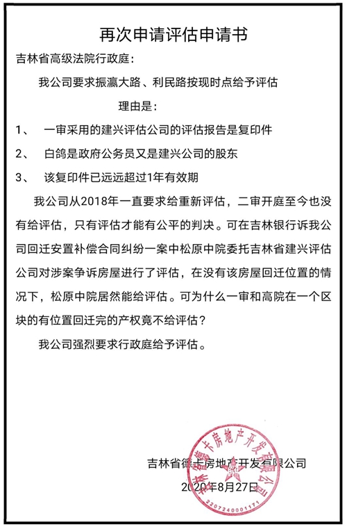 3、一审判决的补偿金给付利息日期与实际时间差距甚远,理由是:①、一审判决的振瀛大路、利民路2013年2月5日给付利息的时间是错误的,在2009年道路就已拆迁完毕交给政府并已修路,有我公司给业户的拆迁协议为证,法院应裁定于2009年开始计算利息;②、一审判决的城市广场2015年11月17日给付利息的时间是错误的,我公司于2013年拆迁完并已交政府,有拆迁协议,法院判决应在2013年给付利息。此案2017年立案,中院2019年下的判决,我公司又于2019年上诉至省高院,对该案要求按现时点重新评估,理由是:一审采信的建兴评估公司的人员既是企业股东还是政府公务员,况且评估的报告已超过1年,已失效;高院开庭至今也没有重新评估,该案从一审到高院历时四年不下判决。我公司多次去找,省高院行政庭庭长居然说“你公司是信访案件(即闹访),要层层汇报”。可是,就在我公司同一个政协区块的吉林银行诉我公司回迁不了房屋的案件,今年7月份,松原中院在没有回迁位置的情况下都能评估,为什么我公司在一审要求有回迁楼房的位置评估却不给评估,案件到高院都已经开庭,至今也没有重新评估的迹象,这是不是法院助力地方政府破坏营商环境、坑害外地投资商?这是不是又一起典型的同案不同判?而和我公司属同类案件的本省四平市火炬置业有限公司诉梨树县政府行政协议案,同样的案情,同一个律师,从中院到高院仅用了四个月就下了判决,而且是企业胜诉。所不同的是,同一个大成律师事务所的律师,在我公司诉政府时代理的是政府一方,而这次代理的是企业一方,仅仅用了四个月,这是不是律师事务所的名气还是关系在起作用?而我公司历时四年,还没有走完法律程序!是明显的显失公平!是不是有政府官员干预司法?法院是不是在枉法裁判?这样的案例,只能让企业对人民法院失去信任,对法律丧失信心!