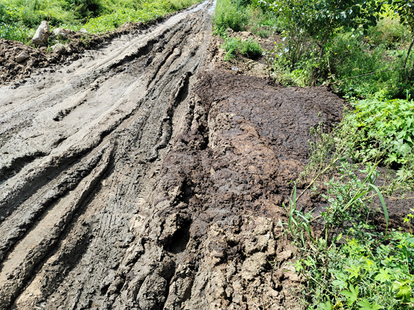 图为:吉牛牧业粪便直接卸在路旁。