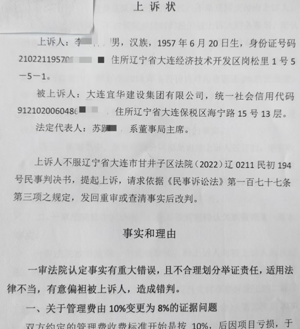 心还不死的李先生又上诉到大连市中级法院,这大连中院也维持了一审原判,没法,他只能将希望放在了辽宁省高级法院这里,这回,虽然案子还没有开庭审理,但他已信心满满。