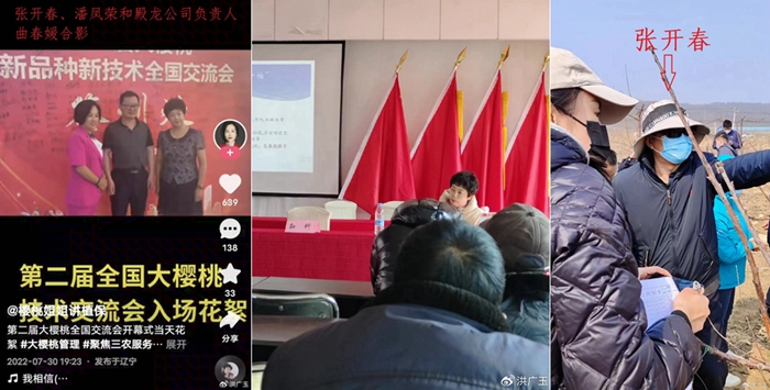2、研判专家和涉事公司有利益关联,农户提出异议后工作专班未回复处理,违背程序公平。2023年3月,大连市工作专班邀请了7位专家组成专家组,专家组构成完全未征求农户意见,农户发现专家中张开春、潘凤荣为殿龙公司实际操办的瓦房店市第二届大樱桃新品种新技术交流会站台——该会议属于收费性质的商业会议,而承办方大连大樱桃技术科研所法人为殿龙公司总经理曲春媛,潘凤荣还在讲座中推荐过殿龙公司的产品,这两位专家显然和殿龙公司存在利益关联,理应回避。农户对此向瓦房店农业农村局寄件提出抗议,但一直没有获得回复。